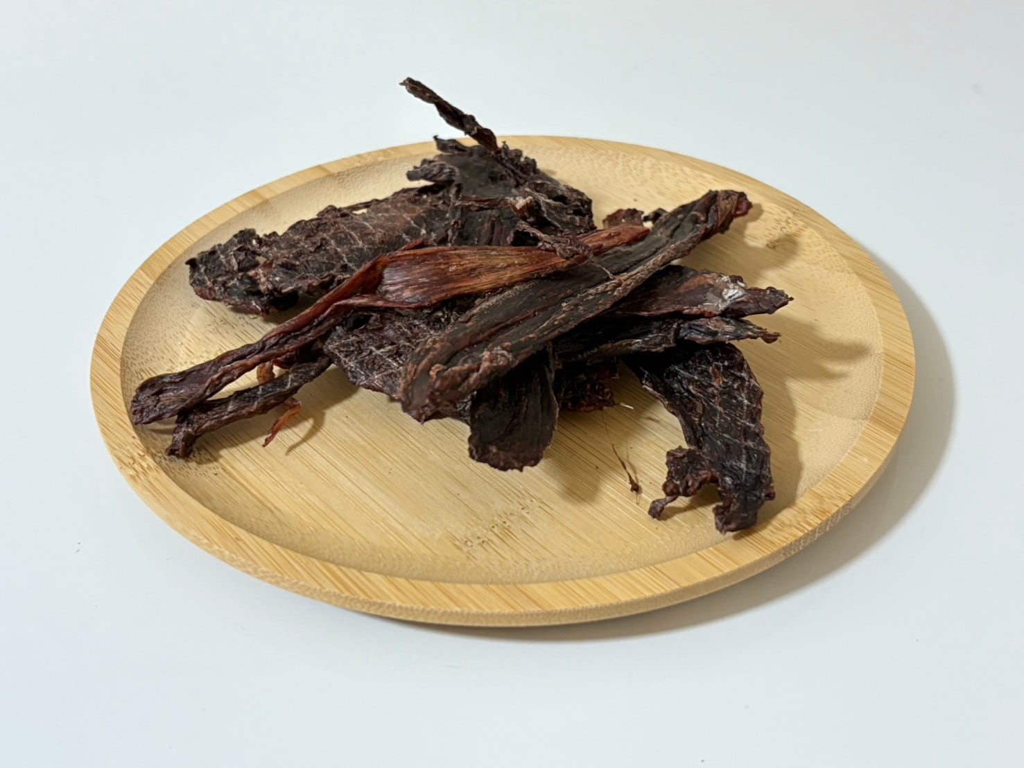愛犬がジャーキーを噛まずに直ぐ飲み込んでしまうため、硬めのジャーキーが欲しいとのお声をたくさんいただき、鹿の前脚にある筋のみをジャーキーにしました。